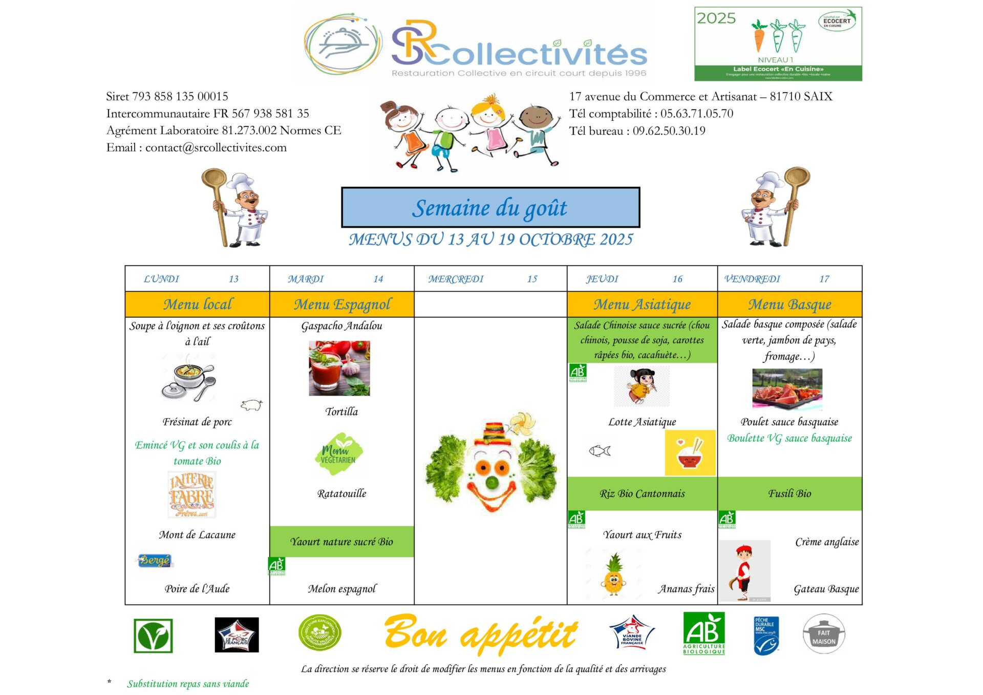 Cantine (infos et menu) Menu cantine semaine du 13 au 17 octobre 2025Share Facebook Twitter Pinterest Linkedin